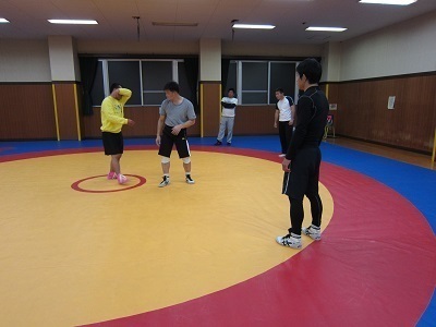 昨夜(金)は綾川レスリング。I藤コーチに腕取りからの攻撃パターンをいろいろ教えていただきました。相手の右手をいなして右手で前腕を下から取って左手で上腕を下から抱えたら、少し肘を極め気味にしてまずは腕取り。そこから、左足を相手の前に出して右手右足を引きながら相手を前のめりにこかそうとします。こけなくても腕を含めて片足タックルしたり、前のめりになったらがぶったり、起きるところを右手を離して両膝ついて右足を取って飛行機投げもありです。右足を相手の後ろに回して右腕を相手の脇にさしてあびせる様に倒すこともできます。いろいろ勉強になって楽しいです。 (^o^)