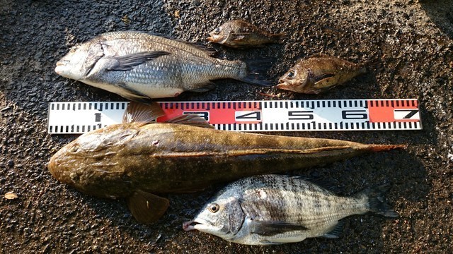 今日はブレイズジムのI上さん親子と一緒に仁老浜へ魚突きへ。暖かくなってきたので、結構沢山のモグラーが来ていました。駐車台を払えば、魚突きはもちろん、サザエ、アワビ、タコもOKのここは、いいとこです。が、魚たちだって簡単には捕まりません。今日は、過去ダントツにでかい頭のタコを見つけたのですが、私びびってしまい、いつもは首の辺りを掴んで捕獲するのですが、タコの足を掴んで捕まえようとしたもんで、格闘の末、足のみというありさまに。(+o+) 小さいアコウは突けましたが・・・ 今日はI上さんの息子さん(小4)が突いたチヌが圧倒的に今日イチ。将来ものすごい魚突き士になりますね。(^.^)
