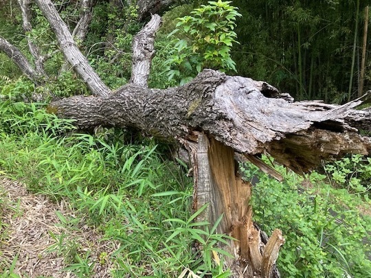 6月はクワガタ捕りの季節です。毎年採取しに行ってる蜜の出る木を見に行くと・・・折れてる!(゚Д゚;) rこれまでほとんどこの木1本を頼りにしてて、多い年は90匹以上捕ってて(10~20匹貯まると全部逃がしてます)、昨年もオオクワガタを捕まえた木なのに、大きく腐っていたのはわかっていたのですが、とうとう腐りすぎて折れてしまいました・・・もうクワガタやめようかな・・。(._.)