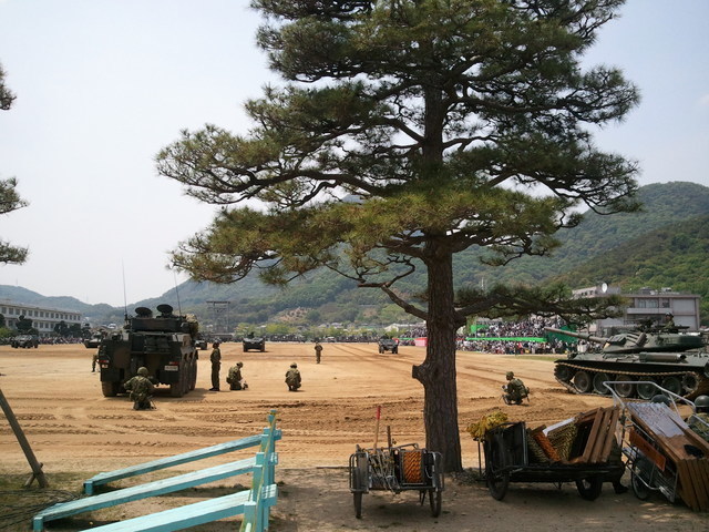 今日は、第14旅団創隊8周年善通寺駐屯地開設64周年記念行事というのに家族で行ってきました。模擬戦闘訓練や砂煙をあげて着陸するヘリコプターなど大迫力でよかったです。来年は是非早めに来て観覧席で見てみたいと思いました。 (^_^)