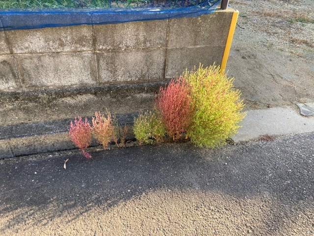 10月初め頃、まんのう公園のコキアは紅葉が始まっていたのですが、当院のど根性コキアは青々としていました。で、最近になってようやく紅葉が始まりました。土無し、水無しの当院のど根性コキア、本当に強いです。(^-^)